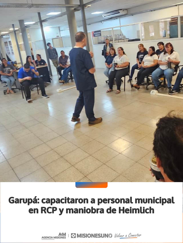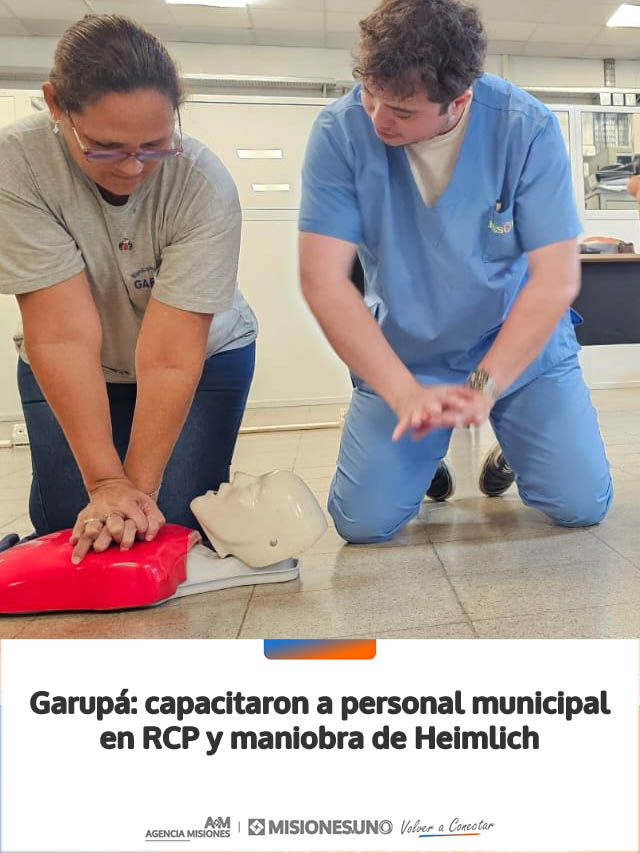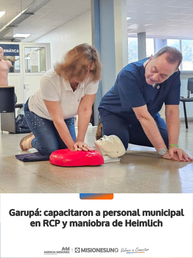 AGENCIA MISIONES.UNO | La Municipalidad de Garupá realizó una capacitación en reanimación cardiopulmonar (RCP) y maniobra de Heimlich destinada a su personal, con el objetivo de fortalecer la respuesta ante situaciones de emergencia.