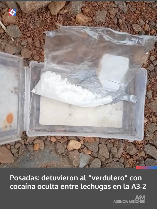 En ese contexto, los efectivos identificaron a un hombre en la manzana 25, quien intentó evadir el control policial, siendo rápidamente demorado. Al inspeccionar un cajón de lechugas, los uniformados hallaron una caja plástica que contenía envoltorios con sustancia polvorienta blanca, además de una bombilla recortada tipo “pipa” y una cuchara metálica.