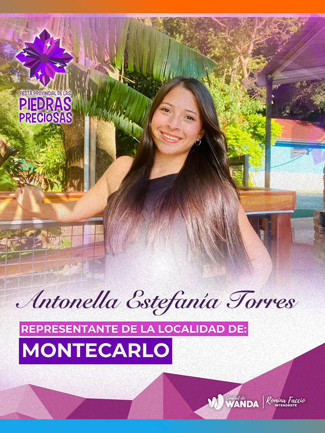 Las aspirantes son: Nahiara Agostina Alcaraz, de Puerto Libertad; Agustina Dávalos, de Wanda; Verónica Esquivel, de Comandante Andresito; Luz Tiziana Cabrera, de Puerto Iguazú; Karen Luján Ocampo, de Puerto Esperanza; Stefany María Ranger, de Eldorado; Antonella Estefanía Torres, de Montecarlo; Milagros Ayelén Velázquez, de Garupá; y Katherine Yanet Villalba, de Puerto Rico.